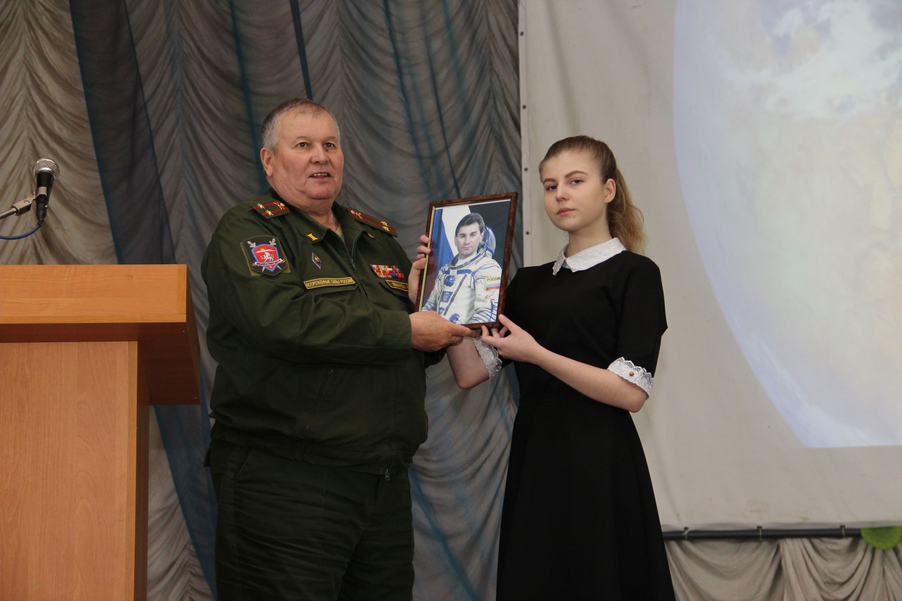 На мероприятии присутствовали гости: полковник в отставке, ветеран ракетных войск стратегического назначения, очевидец знаменательного события первого полета человека в космос Ефименко Александр Иванович, подполковник в отставке, заместитель директора ГБОУ ДО РК «КРЫМПАТРИОТЦЕНТР», депутат городского совета Ильичёв Валерий Иванович, который передал портрет с автографом крымского космонавта, генерал-лейтенанта, начальника Российского государственного научно-исследовательского испытательного Центра подготовки космонавтов им. Ю. А. Гагарина - Василия Васильевича Циблиева.